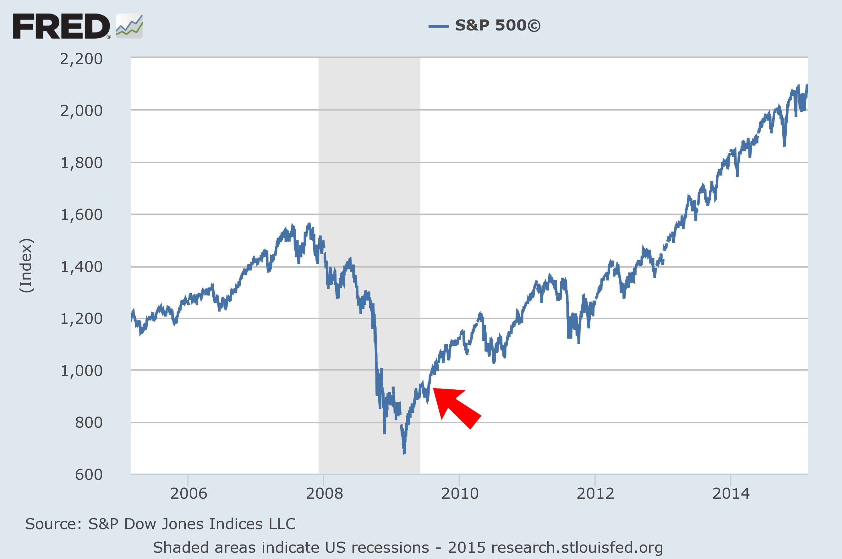 The first “green shoots” come from the stock market. It bottoms. Markets are forward looking – there’s no bell rung at the bottom, but investors are starting to wonder if maybe this isn’t the apocalypse after all. Stock prices start to tick up. Headlines abound screaming about “dead cat bounces” and “knife catching value investors.” The economy is still nasty. No one is getting a job. Don’t even think about asking for a raise. Why would you get a raise? There are 20 people lined up outside asking to do your job for 70% of the pay.