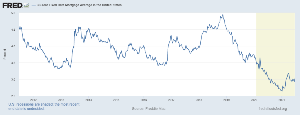 Mortgage rates bottomed in early 2021 and have bounced somewhat but remain low by any historical measure.