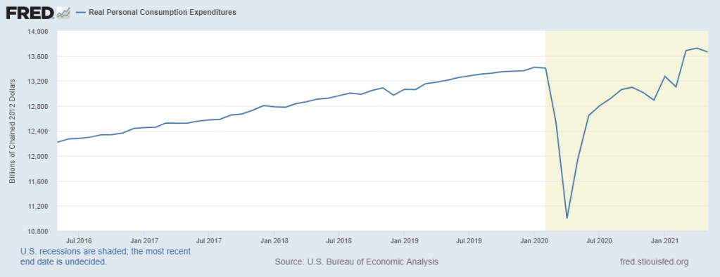 Personal spending has kept track with rising incomes as the American consumer finally feels post-shutdown/lockdown relief and lets free much pent-up demand from their wallet.